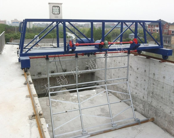 該設(shè)備由護欄、刮泥桁架、刮泥耙及導(dǎo)軌、刮泥橋、行走輪、軌道、提升機構(gòu)、驅(qū)動機輪等組成。
